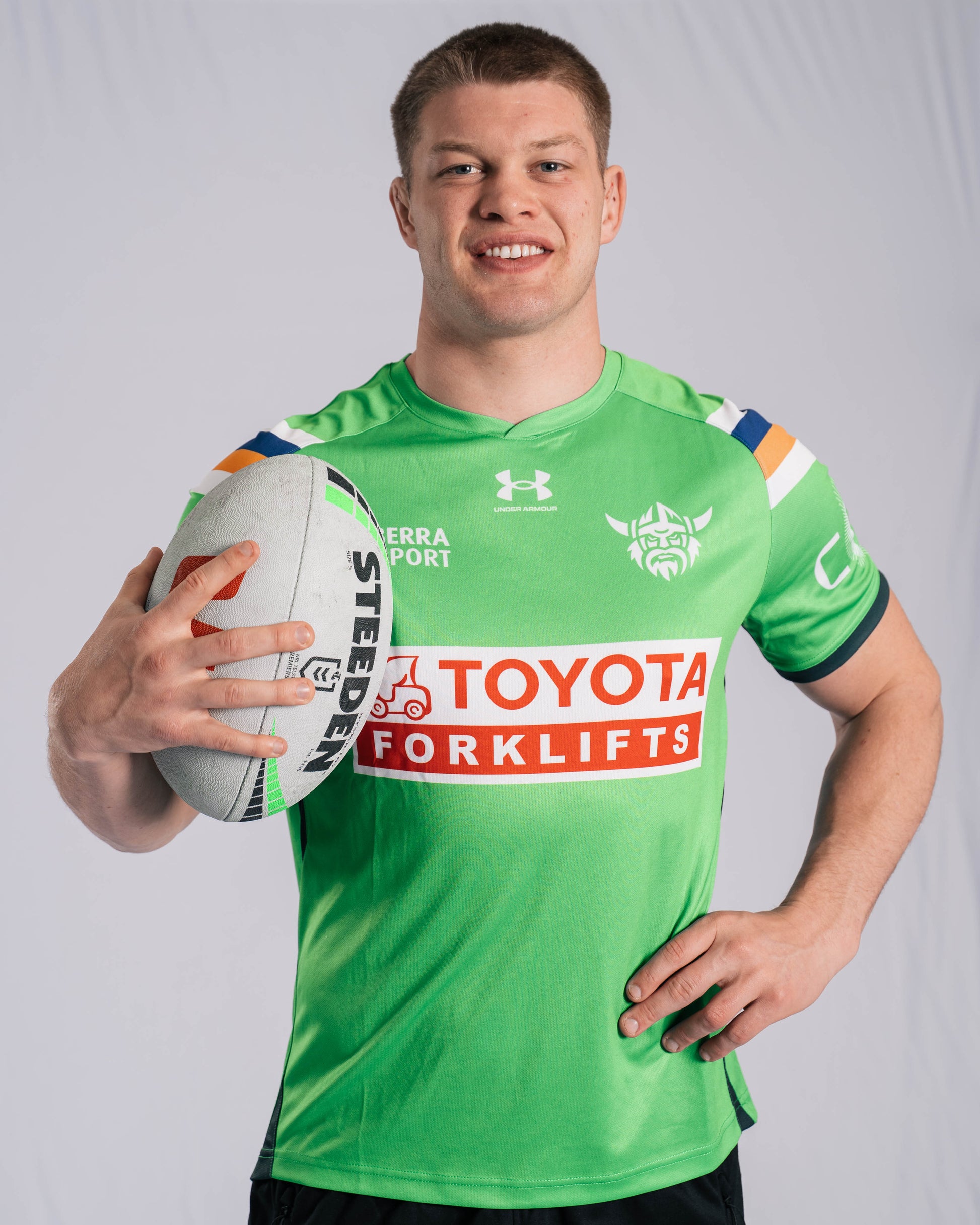 This Canberra Raiders 2026 Training Tee is designed for optimal performance. Breathable, lightweight and comfortable fabric that will keep you cool during any intense training session. This Tee is an exact replica to the one the players wear to train in day in, day out. Design features a striking green colour with the ACT stripe showcasing the city and a dropped curved hem for a comfortable and relaxed fit.