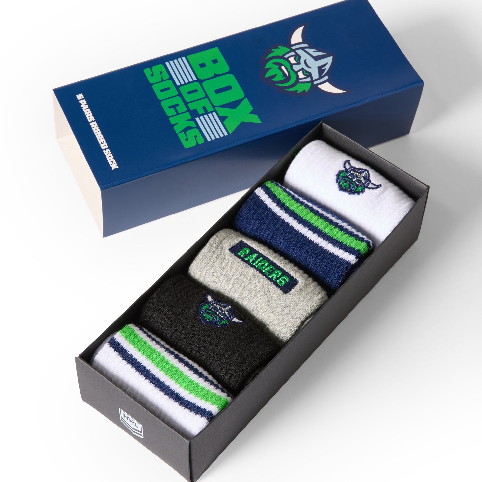 Step up your game-day style with the Raiders Box of 5 Socks. Featuring a mix of designs inspired by the mighty Green Machine, this pack delivers comfort, durability, and team pride in every pair. Perfect for everyday wear or as a gift for any Raiders fan.